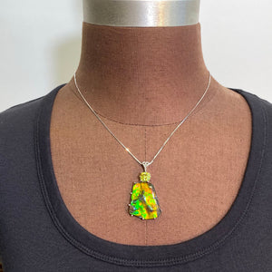 14K White Gold Ammolite and Sphene Pendant 2.66 Carats