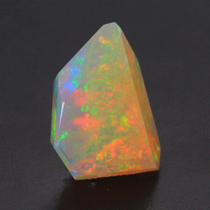 One 16.00 carats faceted opal, rainbow color, cut grade excellent, measuring 17 mm wide, 23 mm long, 12 mm deep. The proportions of the opal are as follows: total depth 70.6%. Faceted by Steve Moriarty.