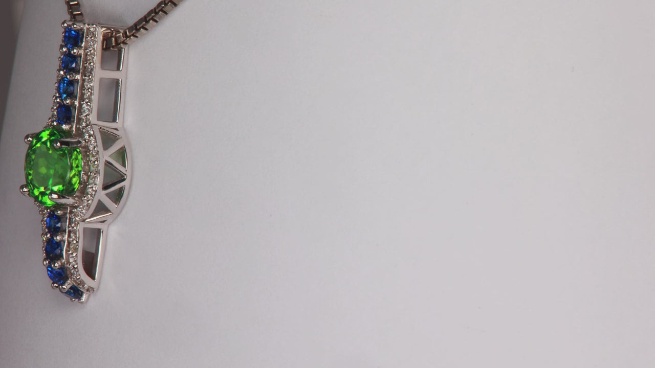 14K White Gold Chrome Tourmaline Pendant with Sapphire and Diamond 2.93 Carats