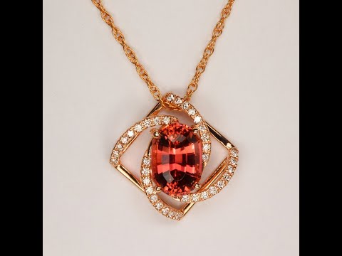 Crafted by designer, Christopher Michael, this pendant exudes a charm that is truly mesmerizing. The centerpiece of this exquisite pendant is a 4.00 carat stepped oval tourmaline from the mines of Congo, flaunting a stunning pinkish-orange hue that is sure to captivate all who lay eyes upon it.