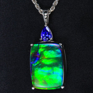 14k White Gold Ammonite and Tanzanite Pendant 19.68 Carats