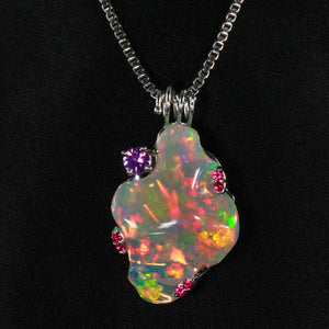 14k White Gold Freeform Cabochon Opal and Pink Sapphire Pendant