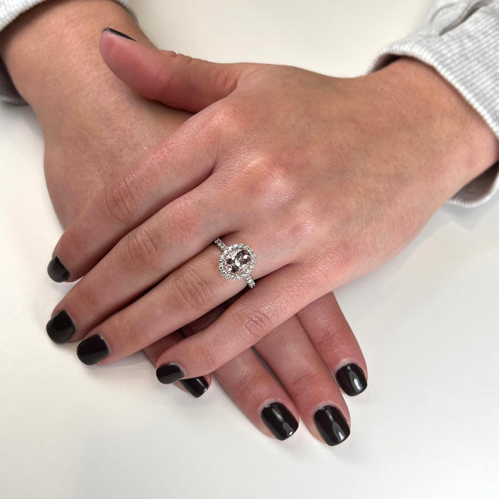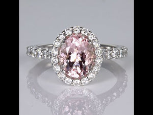 14K White Gold Morganite and Diamond Halo Ring with Diamond Shank 1.71cts