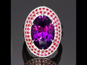 14K White Gold Oval Amethyst and Ruby Ring by Christopher Michael 12.25 Carats