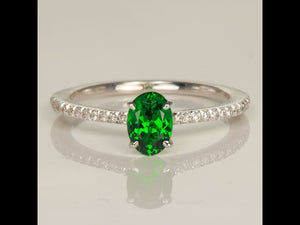 14K White Gold Oval Tsavorite Garnet Ring with Diamond Shank .90 cts