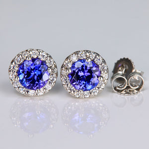 14k White Gold Tanzanite and Diamond Halo Stud Earrings 1.25cts