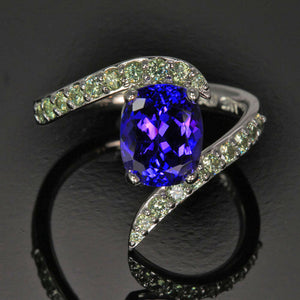 14K White Gold Tanzanite and Demantoid Garments Ring 3.05 Carats