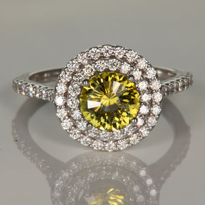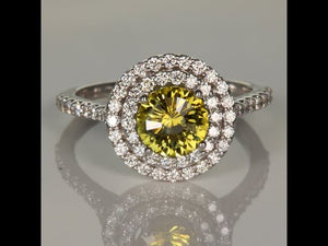 14K White Gold Yellow Montana Sapphire and Double Halo Ring 1.69cts