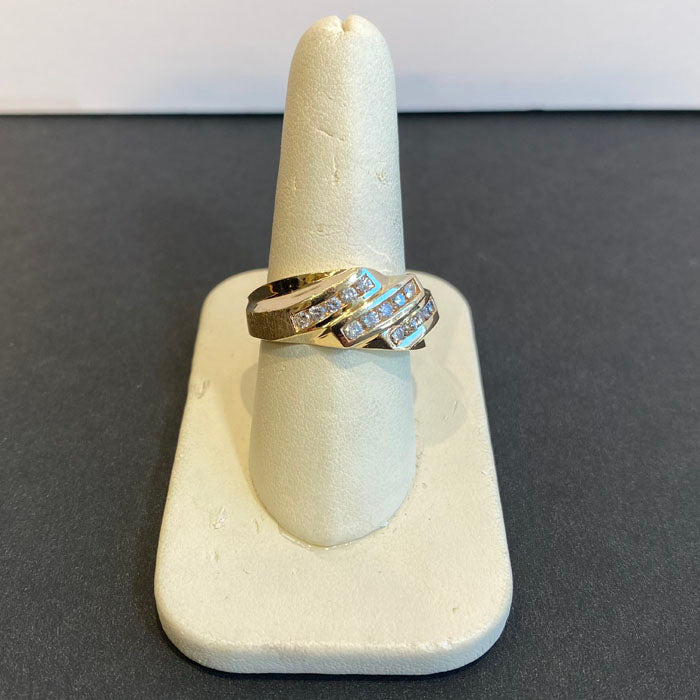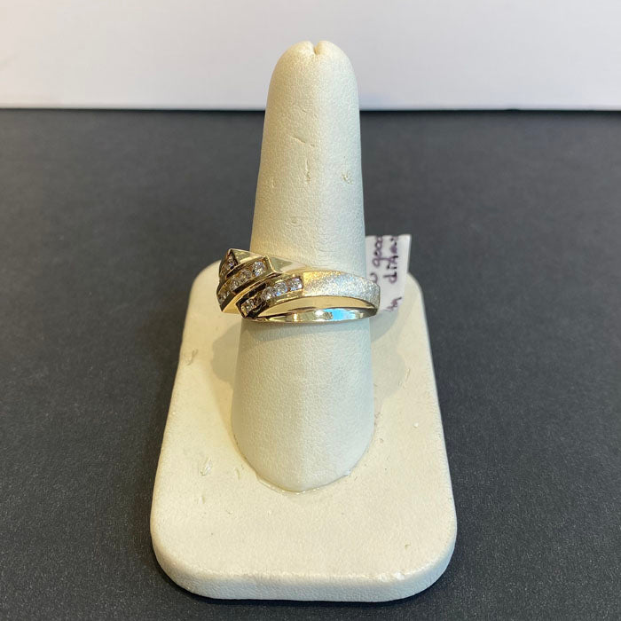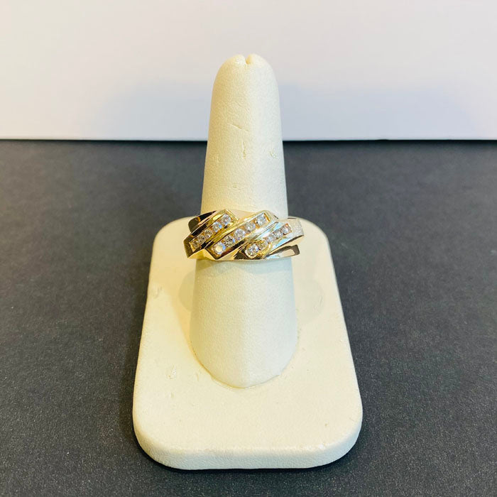 Estate Piece (Previously Owned and Refurbished) One 14k yellow gold and diamond ring. The diamonds are SI2-I1clarity and G-H color, approximately .50 carats. The ring weighs 7 grams. Current ring size is 9. Ring can be sized up/down two sizes from current.