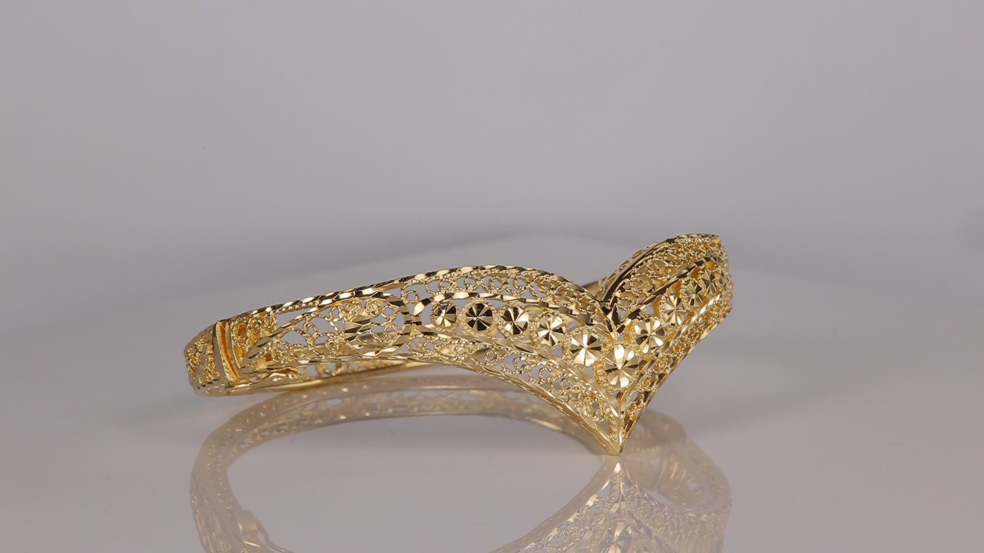 14K Yellow Gold Diamond Cut Bangle Bracelet