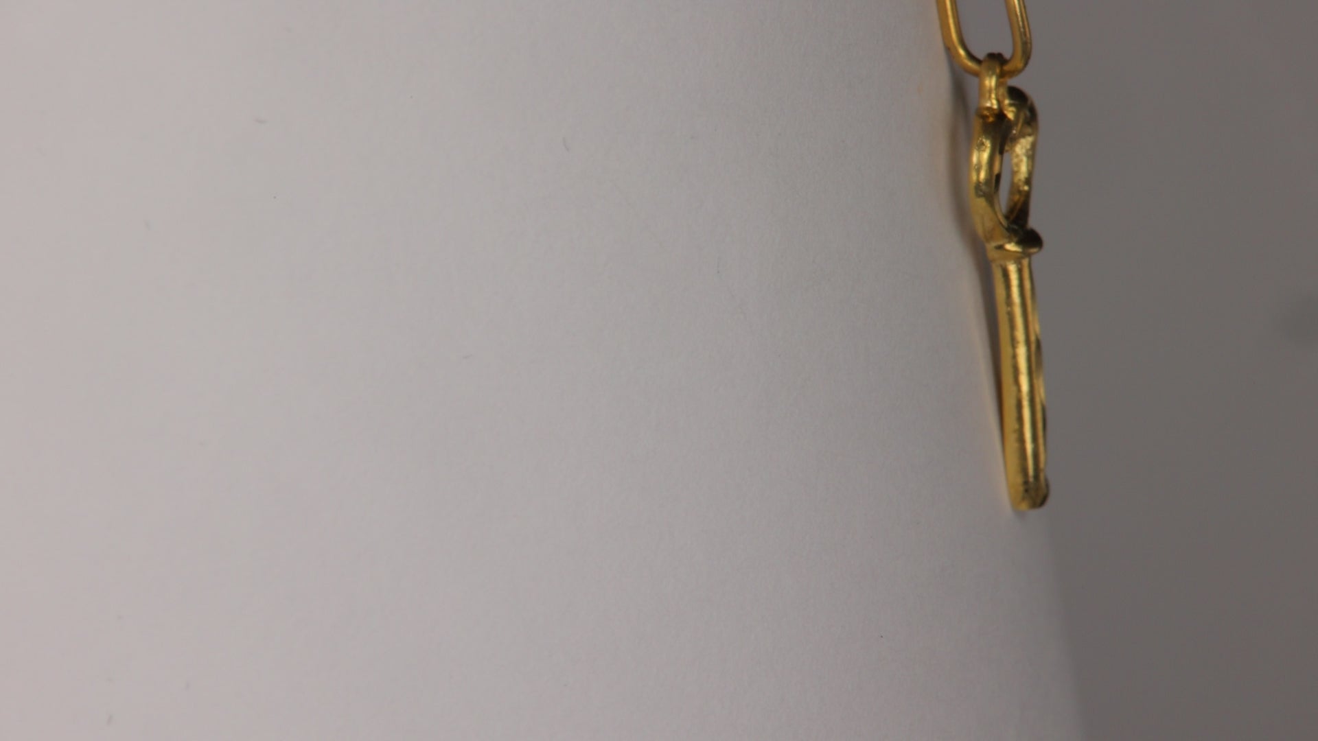 Estate Piece (Previously Owned and Refurbished) 14k yellow gold heart key pendant. The pendant total size is approximately 1".  The total weight is .76 grams.