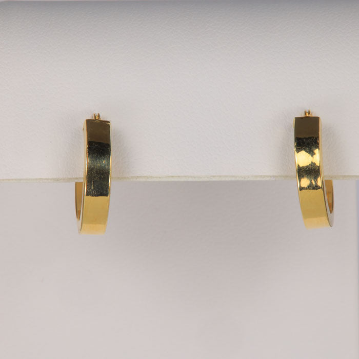 Estate Piece (Previously Owned and Refurbished) One pair of 14k yellow gold huggie hoop earrings. The earrings are approximately 11/16". The earrings weigh 1.2 grams.
