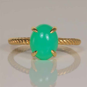 14K Yellow Gold Oval Cabachon Chrysoprase Ring 2.47 Carats