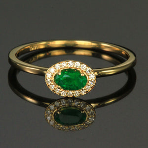 14K Yellow Gold Oval Emerald Ring with Halo of Diamonds
