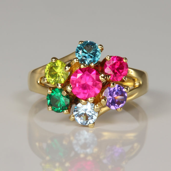 14K Yellow Gold Synthetic Gem Cluster Ring