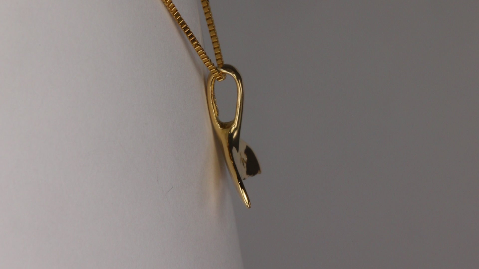 Estate Piece (Previously Owned and Refurbished) 14k yellow gold whale tail pendant. The pendant total size is approximately 9/16". The total weight is 1.37 grams.
