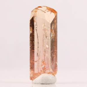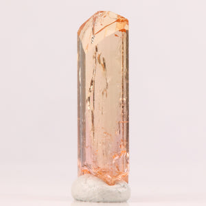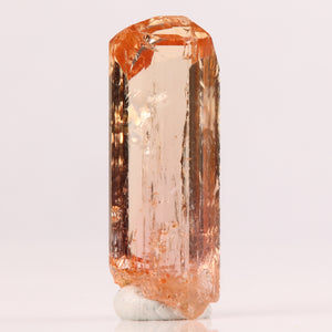 This beautiful crystal has a very nice luster on all the natural terminations and is very gemmy within. I has a pretty pinkish orange color, which will fluoresce a reddish pink color under long wave UV light. This is a unique characteristic for topaz! The last photos shows and example of the fluorescence in this topaz material.