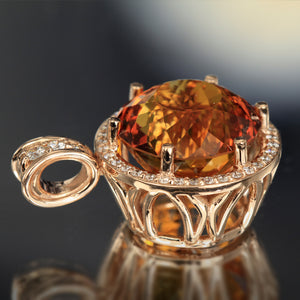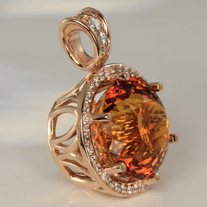 14K Rose Gold 33 Carat Citrine and Diamond Pendant