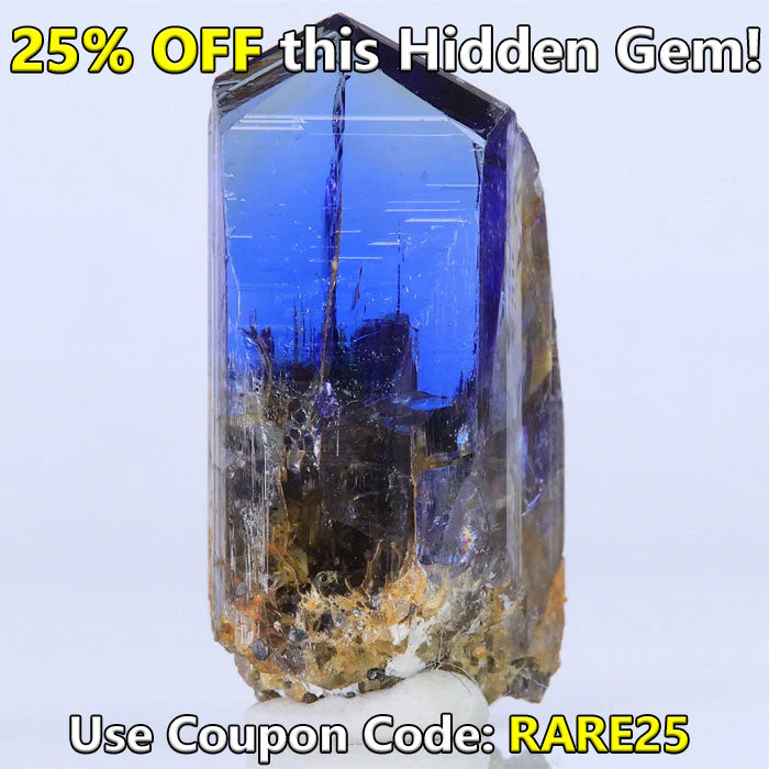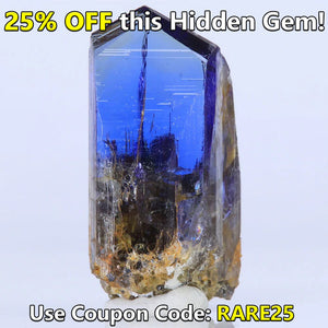 This beautiful tanzanite crystal has a great gemmy window down the bluer axis of the crystal. It's a great gemmy mineral specimen with a sweet crystal structure. Watch the video to see a high resolution 360° view of this crystal.