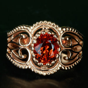 14K Rose Gold Antique Style Spessartite Garnet Ring