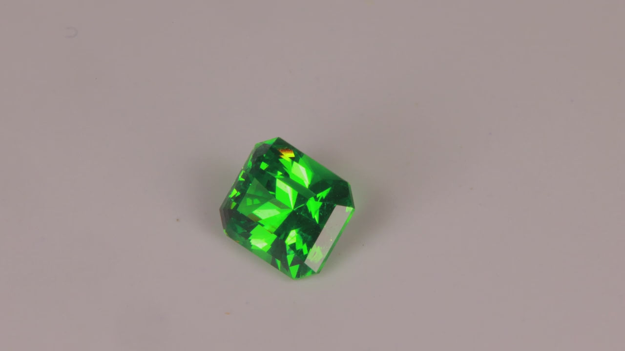 One 1.91 carats barion style emerald cut tsavorite garnet from Lemshuku Tanzania , green color, VS2 clarity, cut grade excellent, measuring 6 mm wide, 7 mm long, 4.9 mm deep; with excellent polish and excellent symmetry. Cut by Steve Moriarty. Natural untreated color.