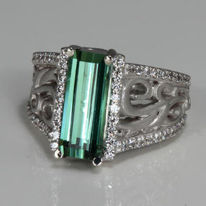 2.) (Limited Time Price Reduction) Blue Green Tourmaline Ring with Fine Diamonds 3.79 Carats