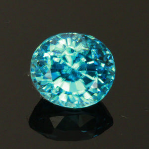 Blue Zircon from Kampuchea with extreme brilliance and deep greenish blue color. the zircon measures 7.2 x 5.4 millimeters Put into ring from Jan Bolz