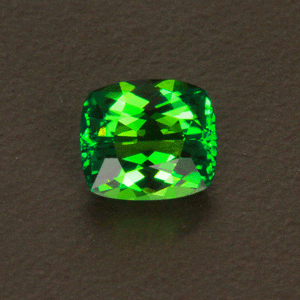 One 1.35 carats antique cushion chrome tourmaline from Tanzania, green color, VS1 clarity, cut grade very good, measuring 6.1 mm wide, 6.9 mm long, 4.3 mm deep; with very good polish and very good symmetry. Natural untreated color.