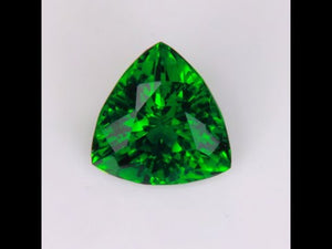 One 1.74 carats trilliant cut chrome tourmaline from Tanzania, green color, VS1 clarity, cut grade very good, measuring 8 mm wide, 8.2 mm long, 4.8 mm deep; with good to very good polish and very good symmetry. Natural untreated color.