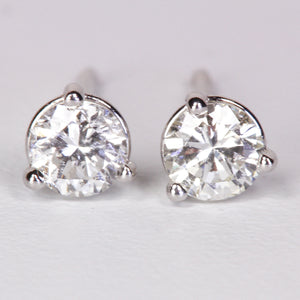 14K White Gold Round Brillant Diamond Earrings .38 Carat