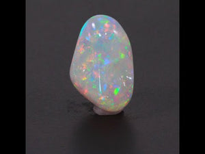 One 23.38 carats freeform opal, cut grade very good, measuring 15 mm wide, 23 mm long, 14 mm deep; with very good polish and very good symmetry. Cut by Steve Moriarty.