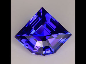 One 7.61 carats shield tanzanite, blue violet exceptional (35%blue/65%violet) color, VS2 clarity, cut grade excellent, measuring 15.6 mm wide, 13.2 mm long, 7.9 mm deep; with excellent polish and excellent symmetry.