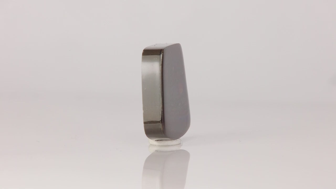 One 15.22 carats freeform cabochon ammolite, cut grade very good, measuring 18 mm wide, 17 mm long; with very good polish and very good symmetry. This ammolite is a fossilized ammonite from the Bearpaw formation in Alberta Canada. A fossilized ammonite dates back 70 million years. Enhanced by filling.