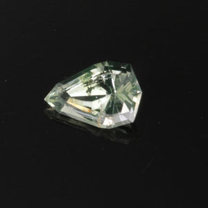 One .80 carat angular pear shape Hyalite Opal from Zacatecas Mexico, very light green changing to fluorescent green color in daylight, I1 clarity, cut grade very good, measuring 6.3 mm wide, 9 mm long, 4 mm deep; with very good polish and very good symmetry. The proportions of the Hyalite Opal are as follows: total depth 63.5%, table width 66%. Cut by Steve Moriarty.