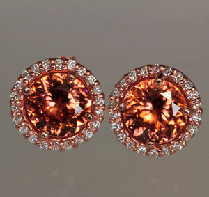 14K Rose Gold Imperial Zircon Halo Earrings 4.38 Carats