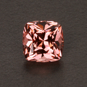 One 2.02 carats cushion cut malaya garnet, peach color  cut grade very good, measuring 6.5 mm wide, 6.5 mm long, 5.2 mm deep. Mahenge Tanzania.