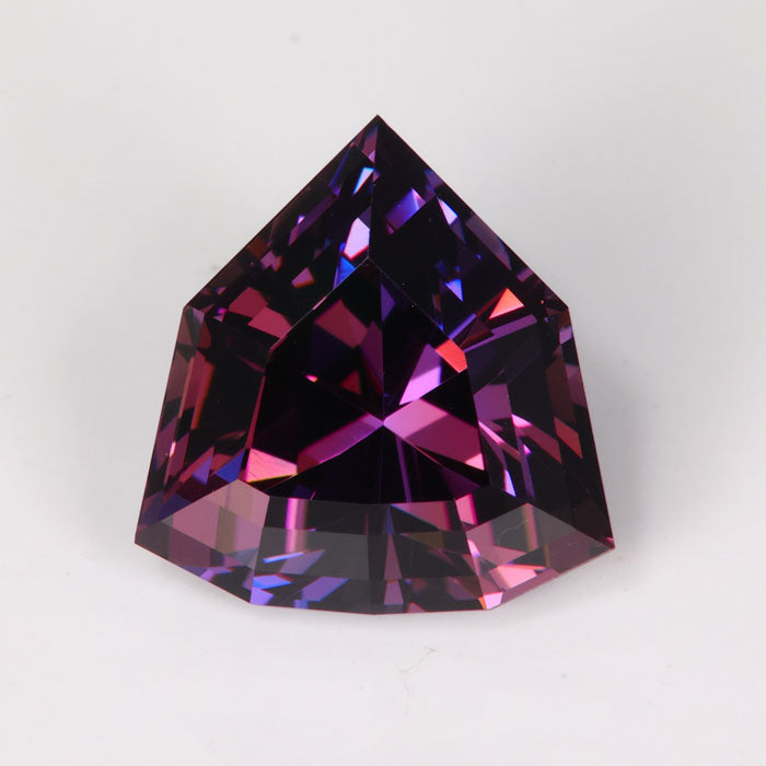 One 8.13 carats stepped shield tanzanite, VS1 clarity, cut grade excellent, measuring 12.2 mm wide, 12.8 mm long, 8.7 mm deep; with excellent polish and excellent symmetry. The proportions of the tanzanite are as follows: total depth 71.3%, table width 54%. Natural untreated Color. Cut by Steve Moriarty.
