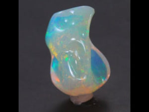 One 22.30 carats sculptured opal from Welo Ethiopia, cut grade very good, measuring 15 mm wide, 26 mm long, 13 mm deep; with very good polish and very good symmetry. Cut by Steve Moriarty.