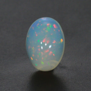 One 9.80 carats oval cabachon cut opal, cut grade very good, measuring 13.5 mm wide, 18.5 mm long, 10 mm deep; with very good polish and very good symmetry. Cut by Steve Moriarty