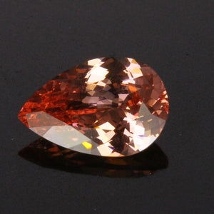 One 4.26 carats pear shape mehenge malaya garnet, peach color, cut grade very good, measuring 8.7 mm wide, 13 mm long. Mahenge, Tanzania.  2x loupe clean.