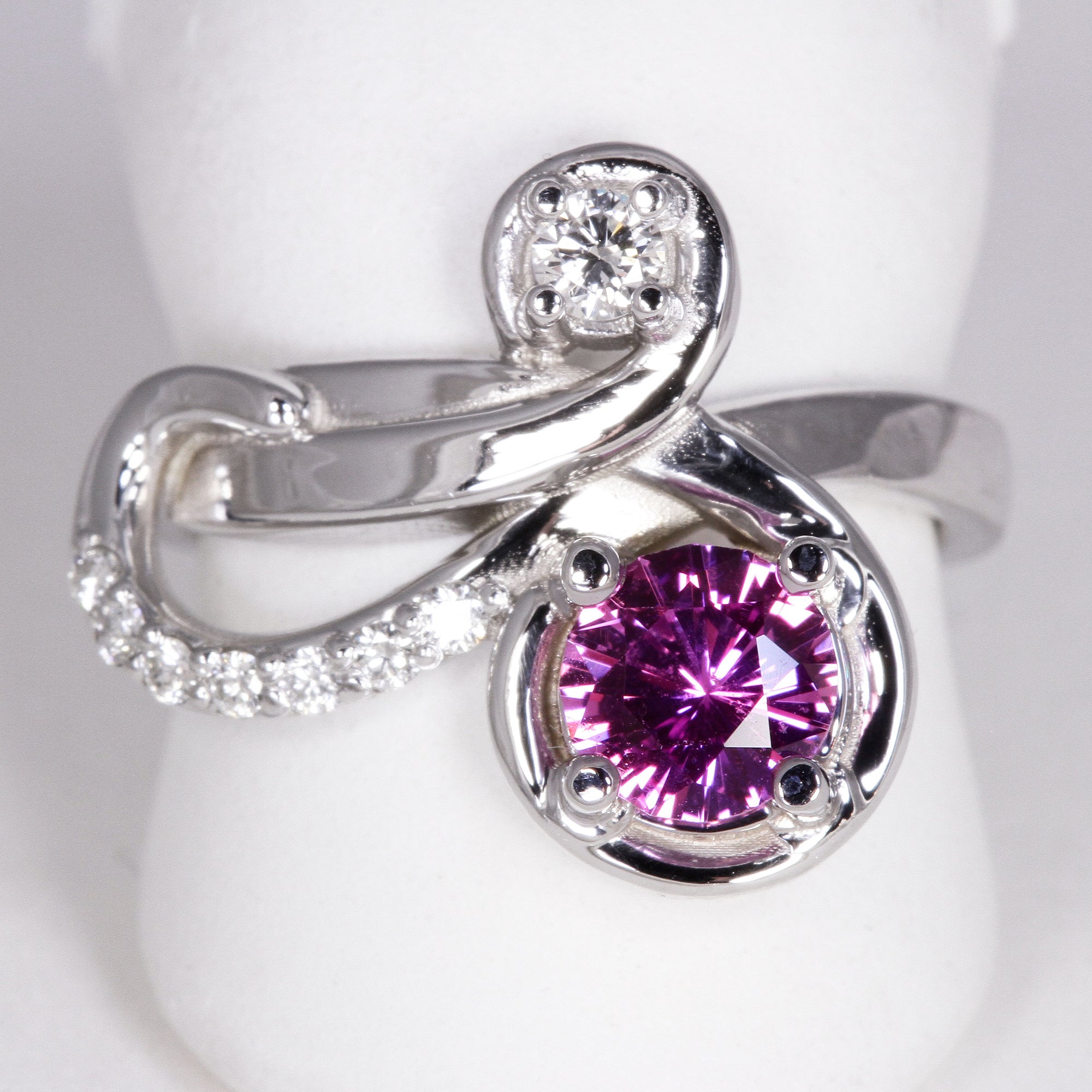 14K White Gold Round Pink Sapphire Ring with Diamonds