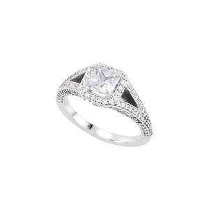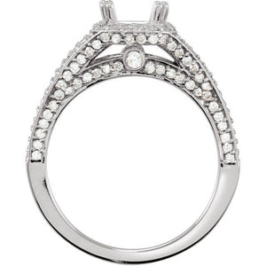 Semi mount has 166 round brilliant cut diamonds, .75ct total weight G SI2. Center stone is available at an additional charge. The mounting holds a 5.5x5.5mm princess cut diamond. Matching band is available, please call. Available to ship in 5-7 days.