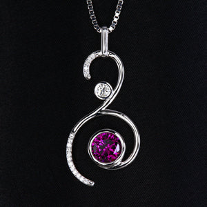 14K White Gold Round Brilliant Purple Garnet and Diamond Pendant