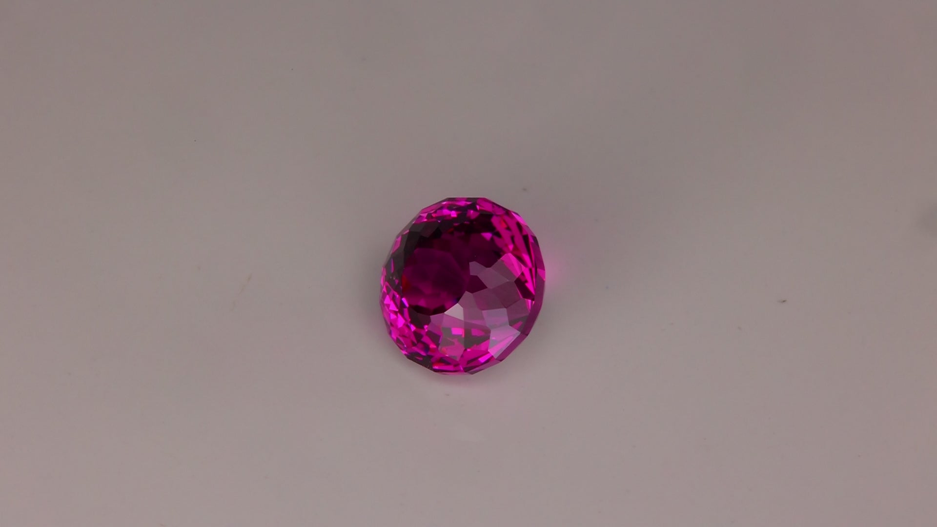 One 5.48 carats round portuguese garnet from Mahenge Tanzania, pinkish violet color, VS1 clarity, cut grade excellent, measuring 9.3 mm wide, 9.3 mm long, 8 mm deep; with very good to excellent polish and excellent symmetry. Cut by Steve Moriarty. Natural untreated color. Refractive index is 1.74.