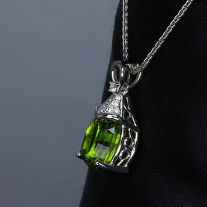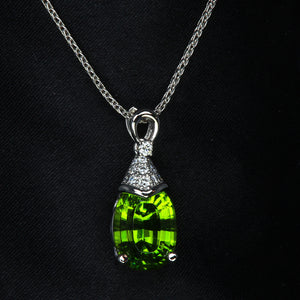 Custom made platinum and diamond pendant for previously purchased peridot and platinum diamond cut wheat chain 18" long with lobster claw clasp.  Appraisal included.  No discounts for custom.