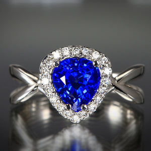 14K White Gold Pear Shape Sapphire and Diamond Ring