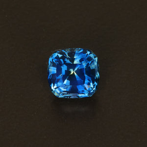 One 1.61 carats square cushion sapphire from Rock Creek, Montana, slightly greenish blue color, VS1 clarity, cut grade excellent, measuring 5.9 mm wide, 5.8 mm long, 5 mm deep; with excellent polish and excellent symmetry. The proportions of the sapphire are as follows: total depth 85%, table width 44.4%. This sapphire is heated to enhance color.  Cut by Steve Moriarty.