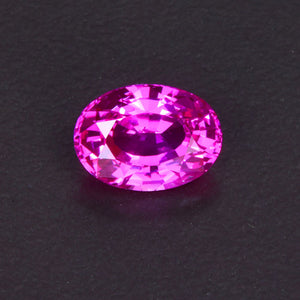 Oval pink sapphire weighing 2.55 carats from Sri Lanka with Si1 clarity very good polish and good symmetry measuring 4.7 millimeters wide, 9.3 millimeters long and 4.7 millimeters deep. The pink sapphire has 70.1 % depth and 49.3 % table. Pink sapphire is color enhanced by heating.