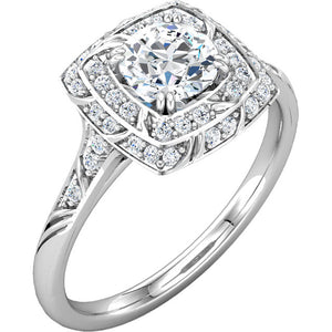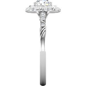 Sculptural Double Halo Engagement Ring for 1 carat Round Diamond
