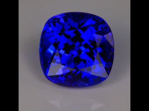 One 9.30 carats square cushion tanzanite, violet blue exceptional (35%violet/65%blue) color, VS1 clarity, cut grade very good, measuring 11.3 mm wide, 11.5 mm long, 9.7 mm deep; with very good polish and very good symmetry. The overall quality rating of this tanzanite is 963 out of 1000. Tanzanite is heated to enhance color.